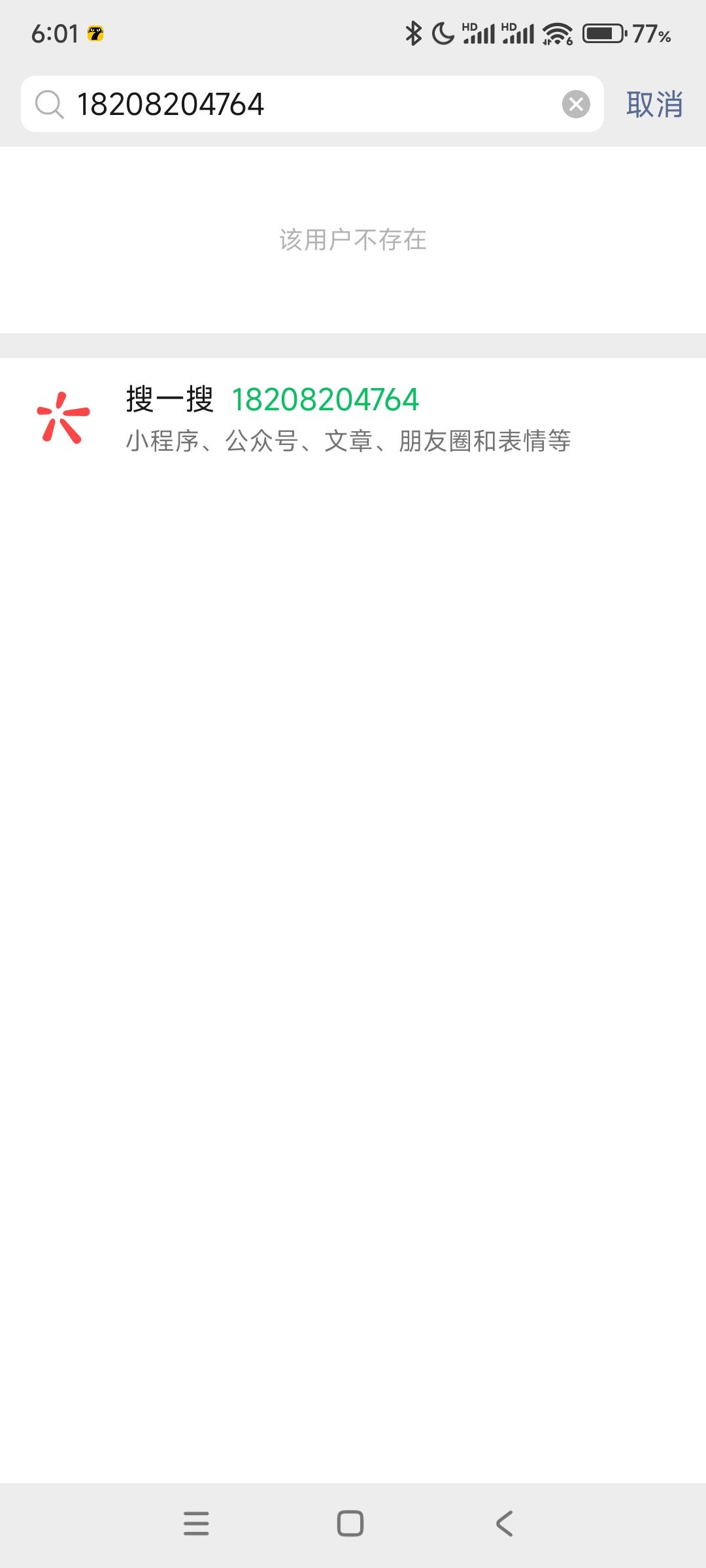 无搜索结果,或对方设置了不能被搜索 已退回