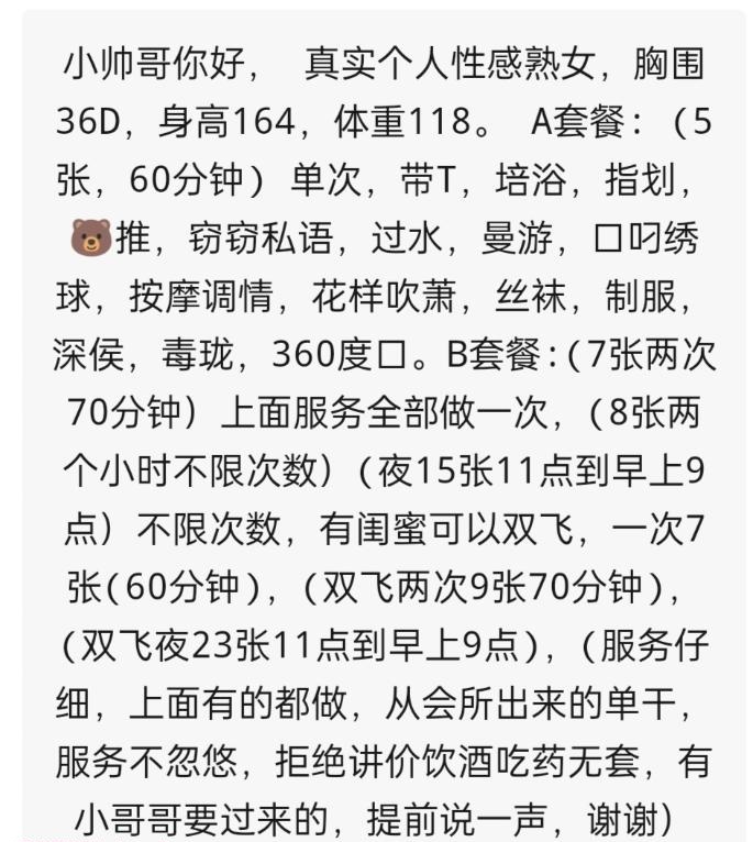 大桥南路附近,本人比较高挑,穿个黑丝绝摆,年纪不小了,不过身材比较顶,洗完澡给我做服务,然后舔蛋蛋, ...